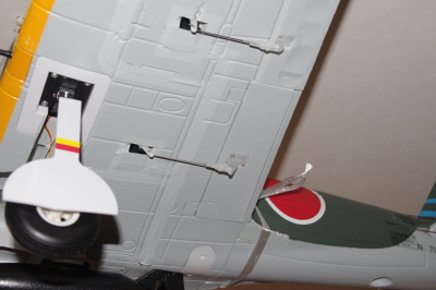 主翼に付いているサーボは、エルロン用と、フラップ用です。