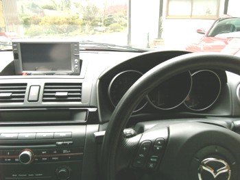RX−8に似たメーターフード。スポーティーで、いかにもって感じですね。 センターにはディーラーオプションのパイオニアDVD再生ナビゲーションシステムも付けました。これが安いです、定価の半額で付けれました。 |