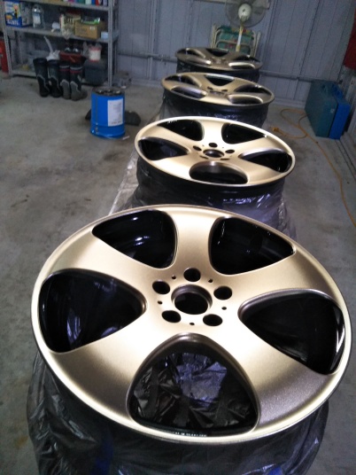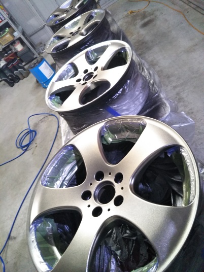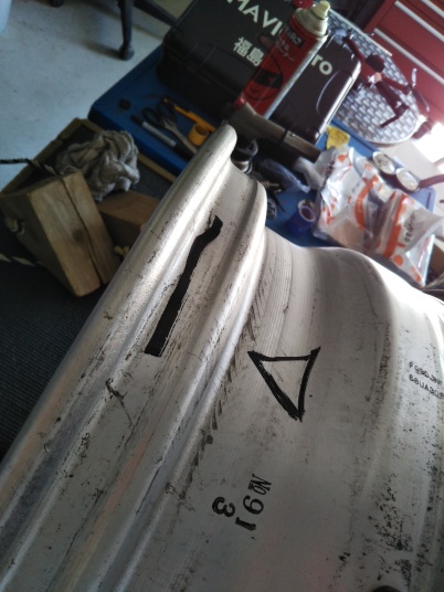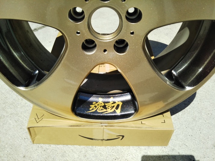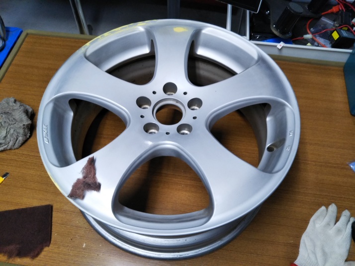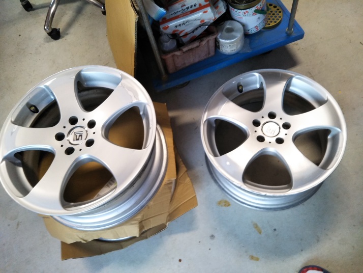 | ワークのLS305の傷歪みあり中古を購入 以前まではスタッドレスタイヤ用もメッキのホイールを履いていましたが、5シーズンでボロボロ。塩害ですね〜。 そんなもんでコスミック・ベネルディー・エレボラーニに似ているホイールを探していたところ、ありましたワークのLS305。 4本とも深い傷あり、2本は歪みあり。 @A傷を削ってパテ埋め足付けです。 B関ペのプラサフを吹き付けます。 CDちょっと磨いて関ペPG80ブラックを塗装。 EFくぼんでいる所をマスキングして、関ペPG80ゴールド(超極粗目)を塗りました。 GHマスキングを剥がし、全体にゴールドを少し塗装して黒い部分もちょっとラメを散布。 Iクリヤーを2回塗って乾燥後ワンポイントに「魂動」のステッカーを貼って終了。 今回は中古ホイール送料込み21,000円と塗料が10,000円程度掛かりました。 |