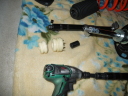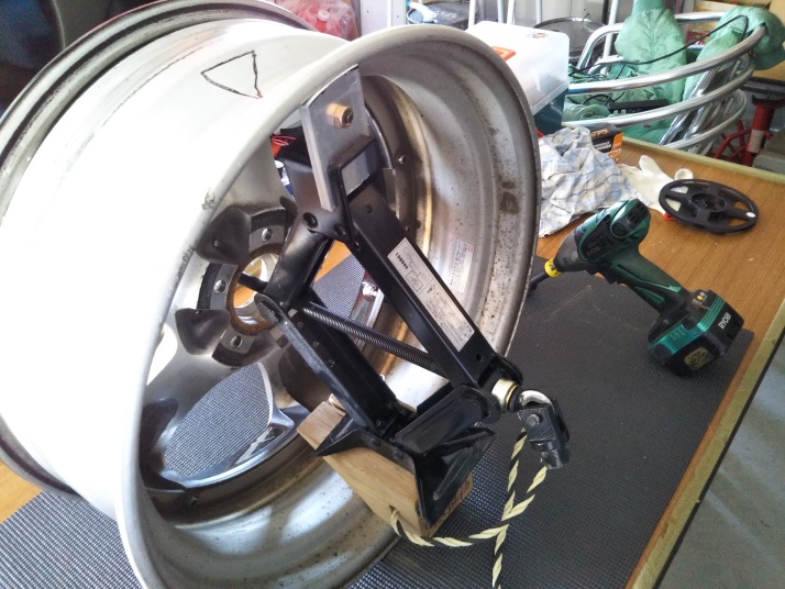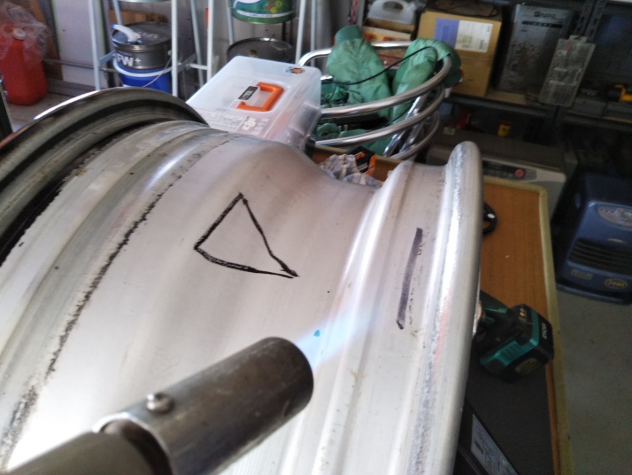 パンタジャッキとカセットガス用のバーナーで復元? ジャッキで形状を戻し、凹んだ部分をバーナーで熱を加えて・・・ 結構戻りました。 |