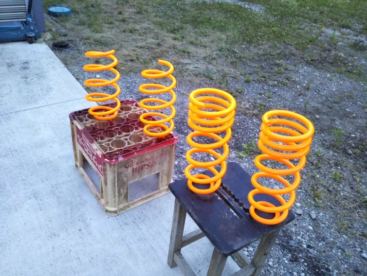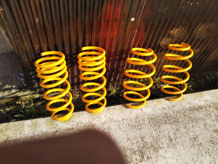 いやね、社外品のスプリングって、簡単に錆びるんですよね〜。東北は冬の塩害もあるし・・・ |