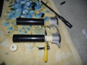 | 3型と純正品番が違うスプリングではあるが、取り敢えず形状は同じでしょう?って事で3型以前のスプリングを購入。 メーカーはエスペリアSuperDownSuspension。 C色は青からオレンジに塗り替えました。DHフロント・リヤ共にバンプストッパー切断、フロントは先端から2段分、リヤは中間2段分を切断、リヤは中間を切断するので、上下をエポキシ接着剤で接着固定。 結果ダウン量は、@→Jフロント50ミリ、A→Kリヤ32ミリダウンとなりました。 |