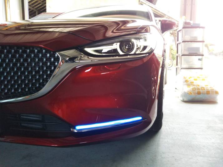 ちょっと光物が欲しい って事で、ヘッドライトの下に直線的なメッキパーツが入っている。 メッキパーツの下側は、エアインティークになっていて、タイヤハウスに走行風を導いているため、塞げない。 よって、メッキパーツの上側を利用することにした。 Amazonでシリコンチューブに入ったLEDテープの入った汎用品が売られていた。 長さは長かったので調整して、シリコンボンドで固定。 |
