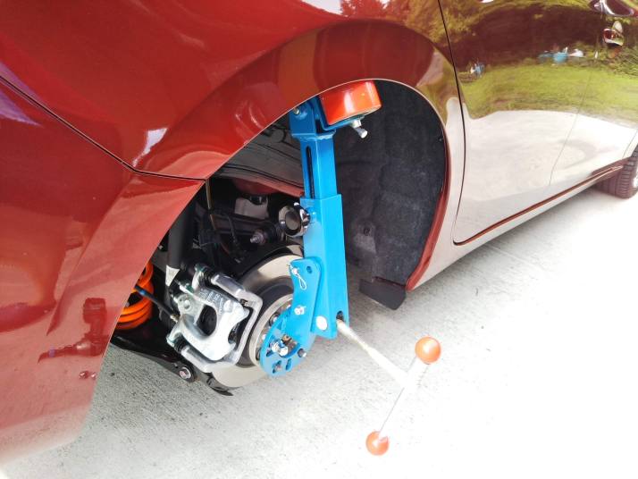 ワイドトレッドスペーサー15ミリで少し当たる。 実は20ミリのワイドトレッドスペーサーを付けたいので、爪折りを実施。 これで、実質8JJ-19INSET+25を履きます。 |