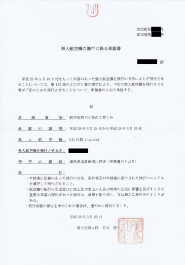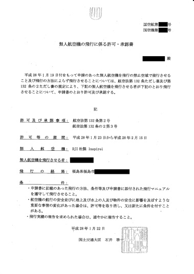 初めて飛行禁止空域での飛行許可が出ました。