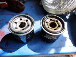 次いで、エレメントを交換する訳ですが、マツダのRE用のフィルターとほとんど大きさが変わらない。写真右がヴィヴィオ用、左がRE及びアクセラ用のエレメントです。