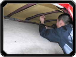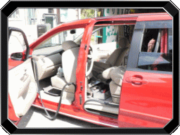 天井を剥がし、フリップダウンモニターを付ける所の位置決めです。補強の入っている所を利用しないと、あの重さは耐えられないですよ。