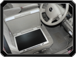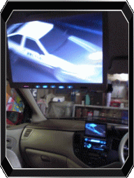 今回取り付けるフリップダウンモニターです。運転席シートの上に載せてますが、かなり大きいです。重量も2.5kgくらいあるのでしっかり取り付けないと落ちて来そうです。 |