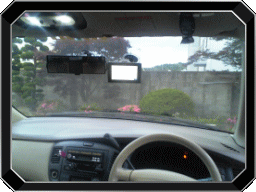 見てもらうと解るとおり、ワンタッチでフロントガラスに貼り付け可能で、手の届く所に設置可能です。充電満タンで4時間半電源コード無しで使用可能です。