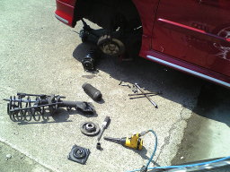 さて、2時間ほど他の用事を済ませて来て、リヤ側の交換です。