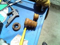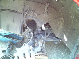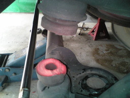ラレラルロットを交換し、バンプストッパーを切断します。これ位切らないと乗り心地悪いですからねぇ〜 |