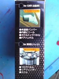 この外箱見た目より小さいんですよ。8cm角位の大きさの外箱の中に、小さい溶剤とスポンジが入っている。近くのホームセンターで見つけて購入して来たのだが、ま!この手の製品は話し半分以下の期待で買って来るのが常識だが、使って見てタマゲタ。