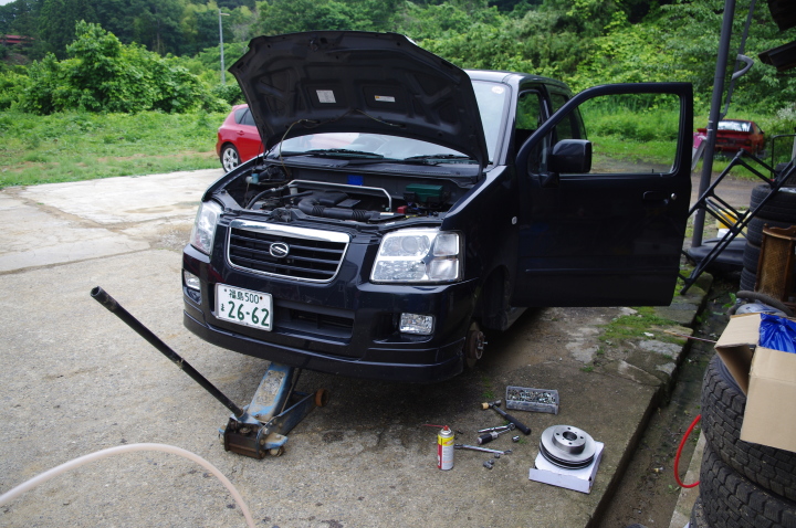 今日は、息子の嫁の愛車ソリオのメンテナンスです。14万キロも乗るとディスクもパットもボロボロです。整備工場に頼むと25000円くらい掛かりますが、ヤフオクでて部品を調達して1万円弱で出来ました。 |