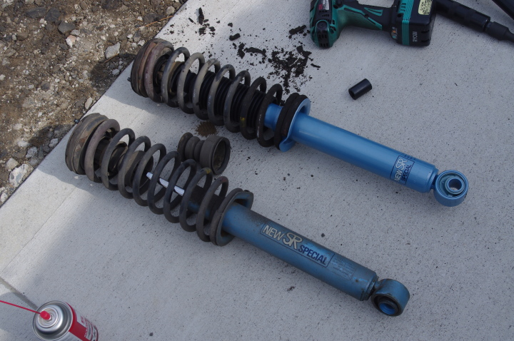 走行距離38万キロのHC33ローレルのアブソーバー交換しました。以前25万キロで交換してから13万キロ乗りました。流石に全部抜けてました(*_*) |