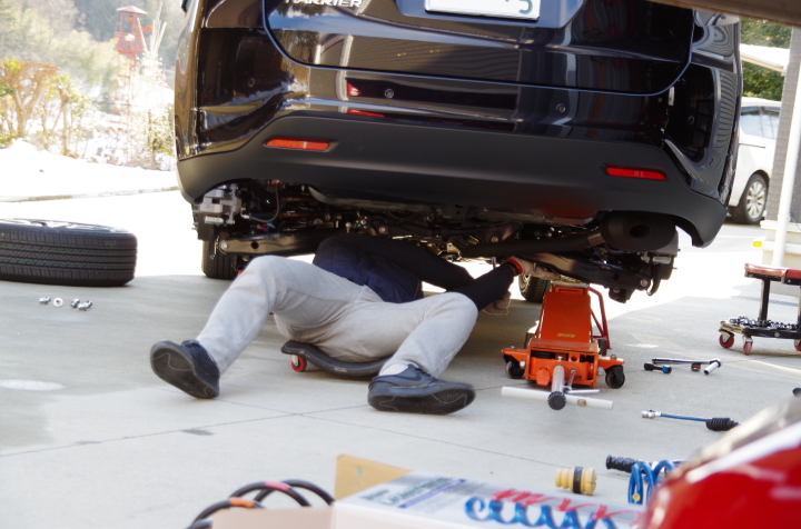 次男の嫁がハリヤーを買った。本日納車で速攻でダウンサスの取り付け。 今日の最高気温は2℃(-_-;)寒い! 寒いのに・・・。