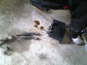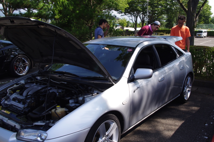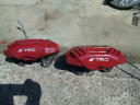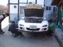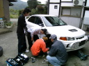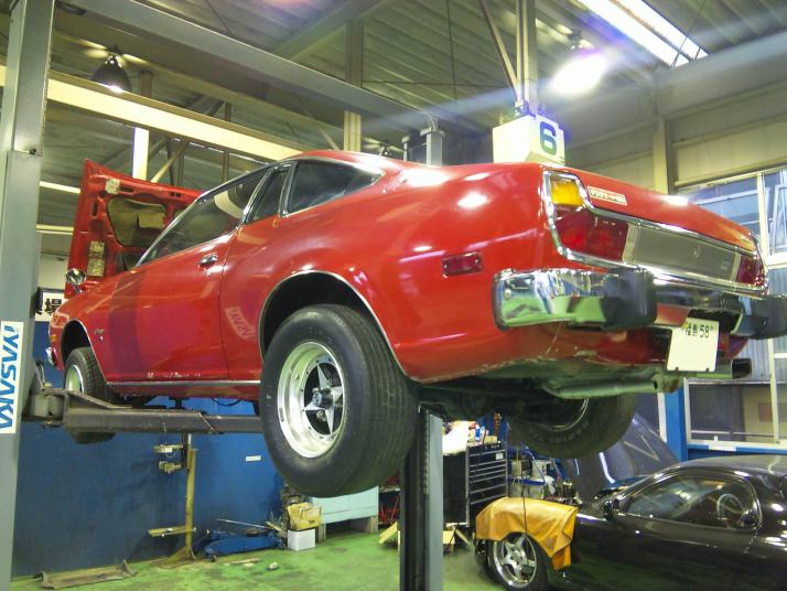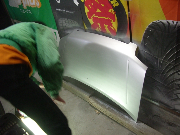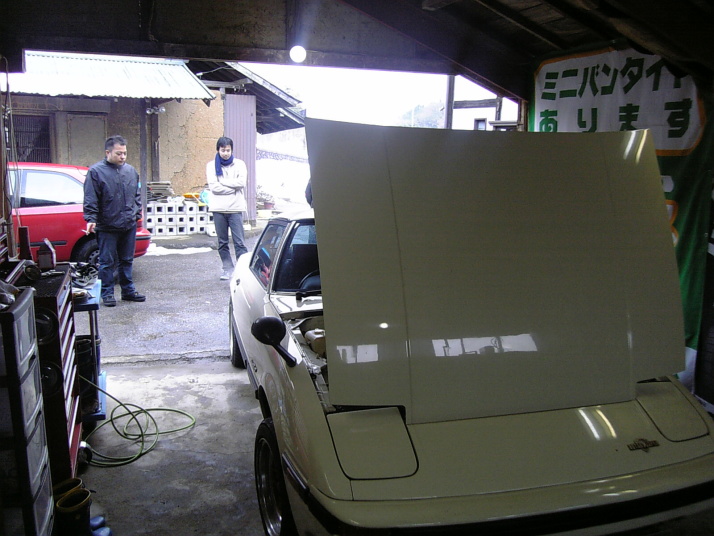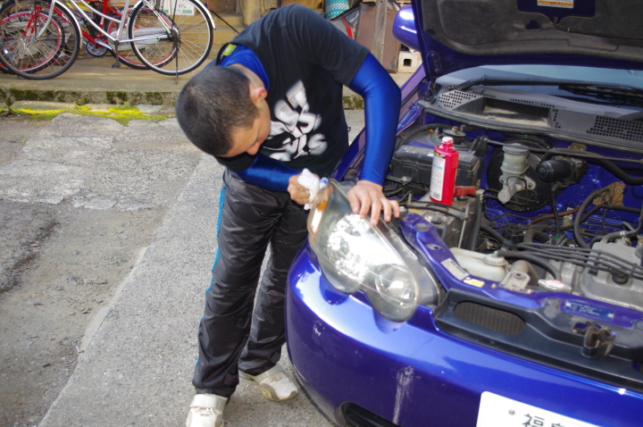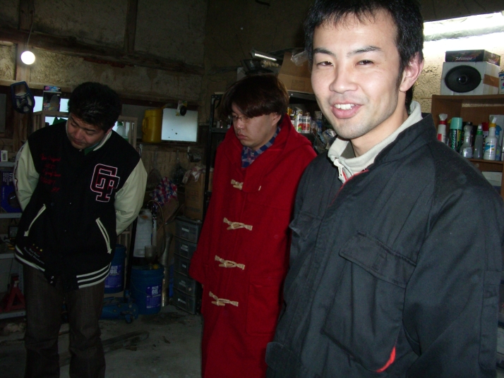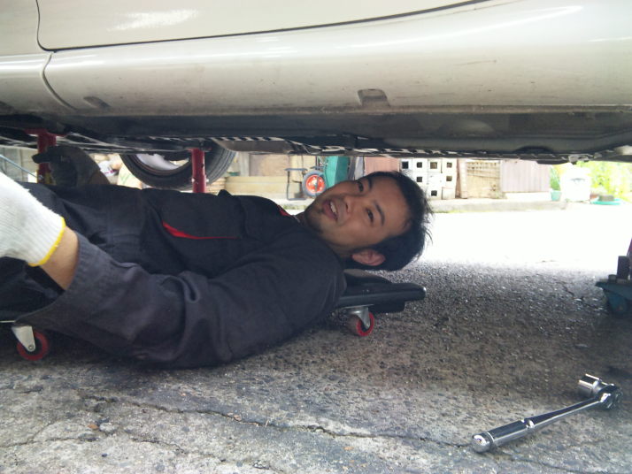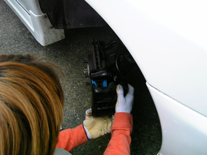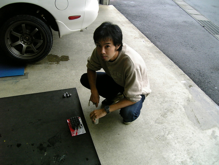 ちょっとトラブル発生!!袋ロックナットの(黒)がまだ届かない。「じゃー届くまでブレーキオイルを交換しましょう」と言う事で、ブレーキオイルを交換していた。そこに「お世話様でーーす」って、メーカーさん!したら、メッキナットじゃん!「黒って言ったじゃーーーん」って、富田君。「しょうがねぇーーなぁー」って、イエローハットから買って来っぺ。