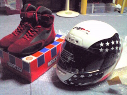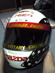 いっつも借り物でサーキットを走ってましたが、やっと買いました(笑)。インポートのアメリカ星条旗のなびいたヘルメットです。ネットで¥7,500(笑)ヤス