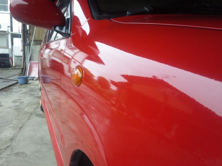 完成後の写真だけでは判らないですが、表面はホコリでザラザラ(>_<) で、今日は朝から雨だったので磨くことにしました。今回はFCの塗膜とは違い普通のウレタンソリッド、ですので初めに2000番、仕上げに3000番のコンパウンドを使用しバフ掛けしました。 仕上げにポリマーコーティングをしてツルツル(^_^)v |