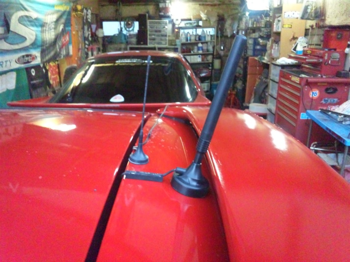 今まで使用していたアンテナは左下の写真に写ってる、しょぼ〜〜いアンテナでした。ま、ごく一般的な付属のアンテナですが・・・ で、このぶっといアンテナ、これが性能抜群で、通勤距離27km中1/4は画面がフリーズ状態でしたが、このアンテナに交換したら、100%観れるようになりました。 これで、3900円は有りですよ。 |