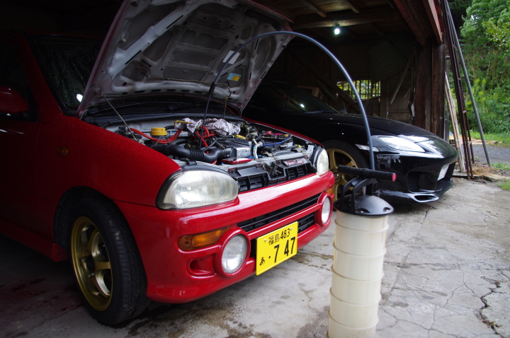 ヴィヴィオも基本的にジャッキアップしないで作業可能です。 オイル抜きもポンプで上抜き、オイルエレメントもバンパーの下から手を入れて交換が可能なので楽です。 エレメントはRE13Bと同じですので、纏め買い出来るから価格も超低価格ですよ。 通勤距離1日50km 一月で約1500km走りますので、2ヶ月に1度オイル交換してますよ。 軽は普通車の約倍のエンジン回転数で走行してますので、早目のオイル交換が必要ですよね〜。 しかし、良く走る車ですよ〜 普通車を先導するくらいの走りでも、1リットルあたり20km以上走りますし、何より車が軽いのがいい(^_^)v 軽快ですね〜 |