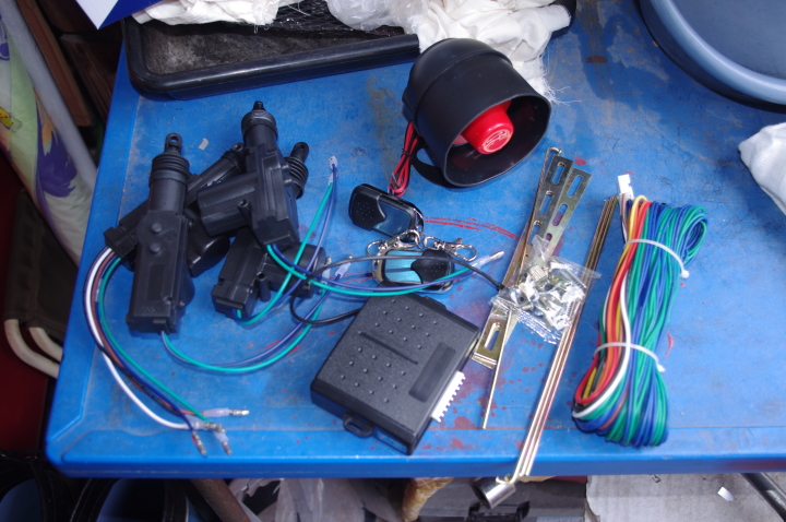 | キーレス・エントリーの取り付けです。 アクチュエーター4個付き、リモコン2個付き、アンサーバック・スピーカー付きで、なんと¥2,900です(笑)。 安物買いの銭失い病ですね(笑)。 ま、ヴィヴィオは2ドアなんで作業は早かったですよ、作業時間は2時間半で終わりました。 @今回購入したキーレスの部品です。 Aまず運転席側にアクチュエーターの取り付けです。ちゃんとステーなども付属してましたので、取り付けも簡単。 Bウインカー出力線をウインカーリレー近くに繋ぎました、左右独立配線なので、ダイオードが必要なく楽でした。 Cメイン・ユニットを繋いで、仮に電源を取り作動確認です。 Dアンサーバック・スピーカーを取り付け、作動試験です。 結構喧しい(~_~;) E助手席側のアクチュエーター取り付け、なんか配線が短い(>_<)。軽自動車で、ギリギリって、普通車では付属の配線では絶対とどかないです(>_<) ですので、助手席側はリヤドア用の配線を使いました。F最後に作動試験してドアトリムを元に戻して終了。 |